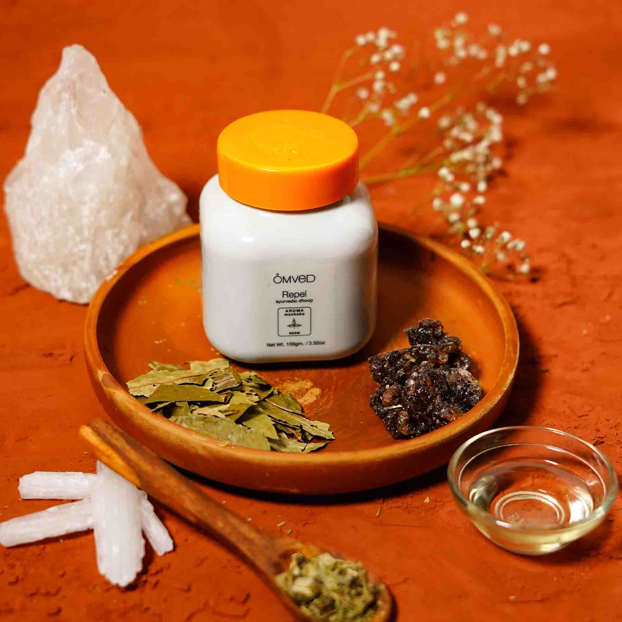 Repel Dhoop deter bugs and mosquitoes around you with the rare blend of botanicals. It sanitizes the atmosphere and creates an aromatic anti-viral and anti-fungal shield in your living space.