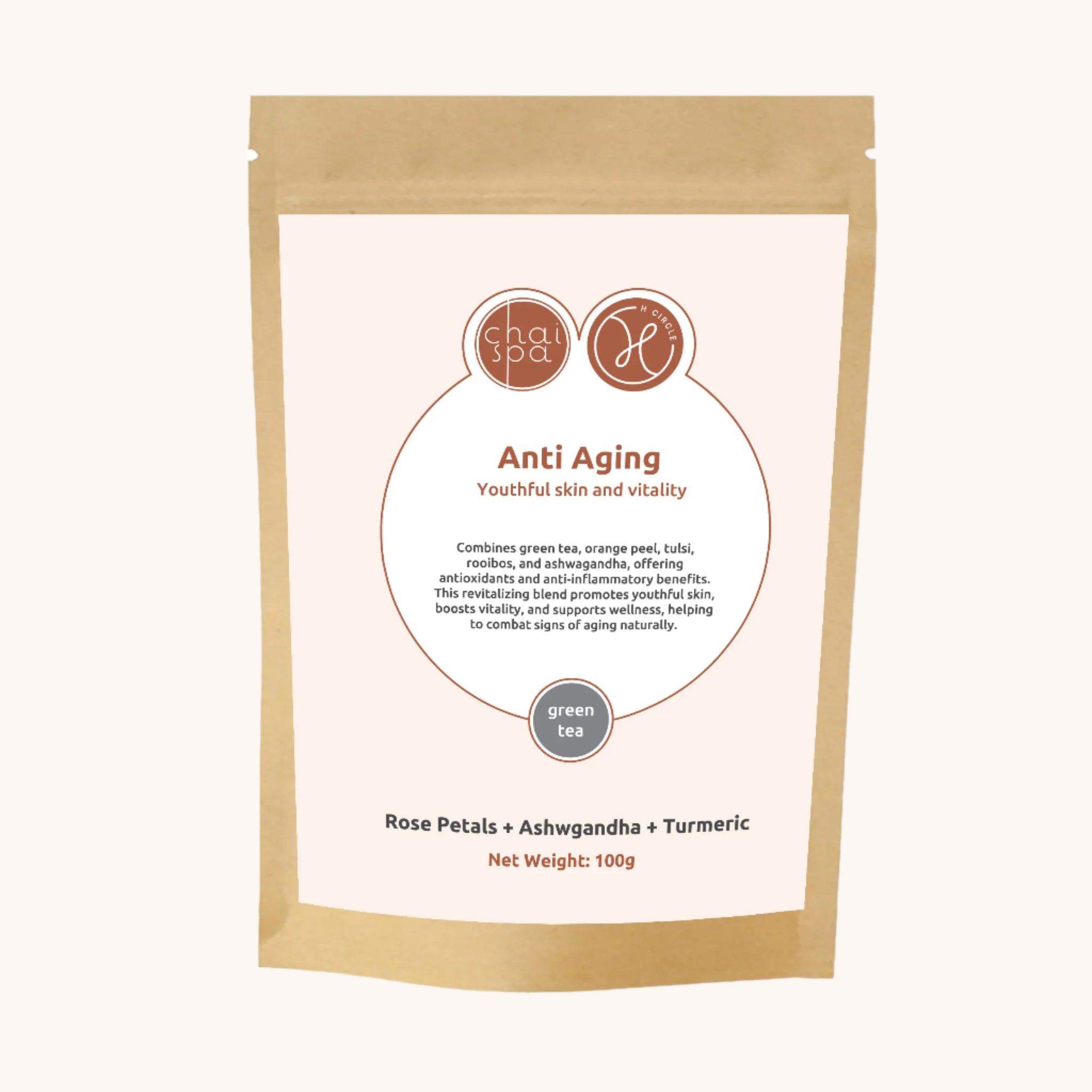 Experience the rejuvenating power of our Anti-Aging Herbal Tea, a thoughtfully crafted blend of antioxidant-rich herbs known for their skin-enhancing and vitality-boosting properties. This caffeine-free infusion supports your body's natural defenses against oxidative stress, promoting a youthful glow from within.