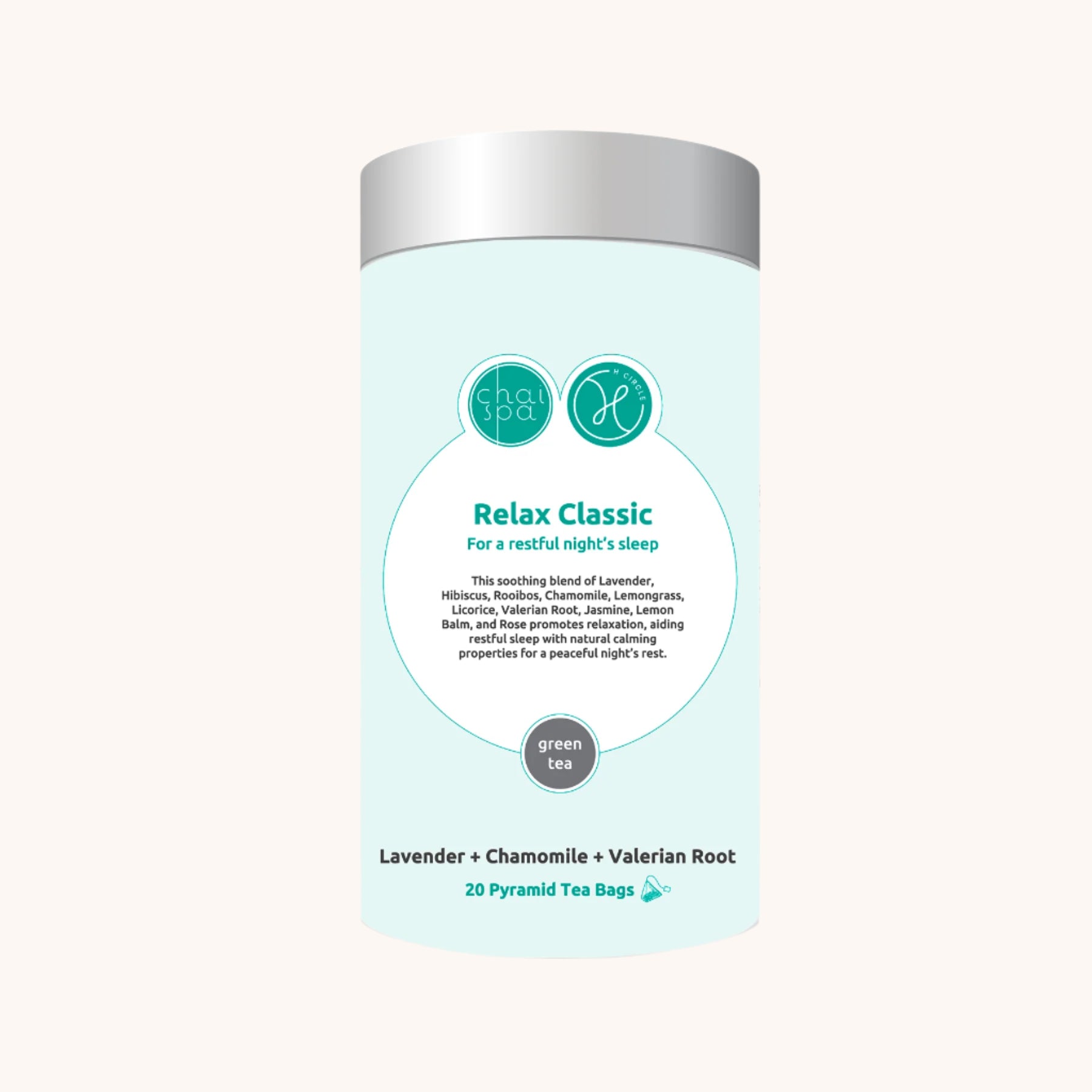 Unwind and find your inner calm with our Relax Classic Tea, a soothing blend of time-honored herbs renowned for their calming properties. This caffeine-free infusion is thoughtfully crafted to help ease stress, promote relaxation, and support restful sleep.