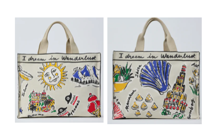 Handle with care. Kindly note this bag is made of natural fibres and is likely to bleed with time on the white canvas if rubbed with water or in contact with strong chemicals or solvents.